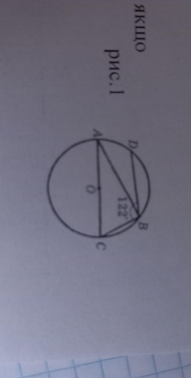 точки D і B кола лежать по один бік від діаметра AC. знайдіть кут ABD, якщо DBC = 122°