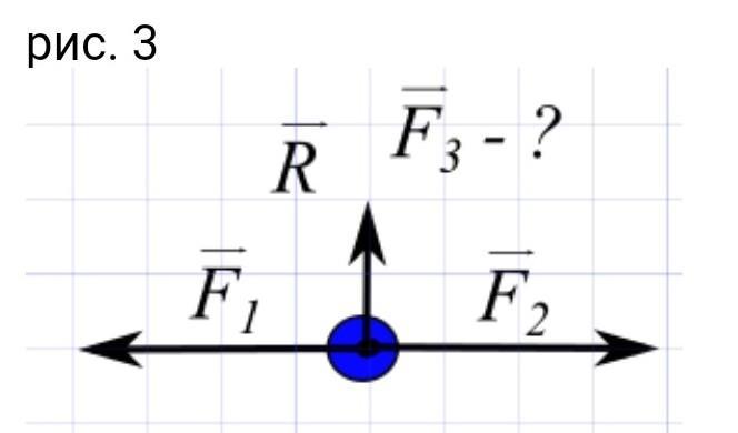 На тело действуют 3 силы. На рис. 3 изображены 2 из них, и равнодействующая всех трех. Определите величину и направление третьей силы.
