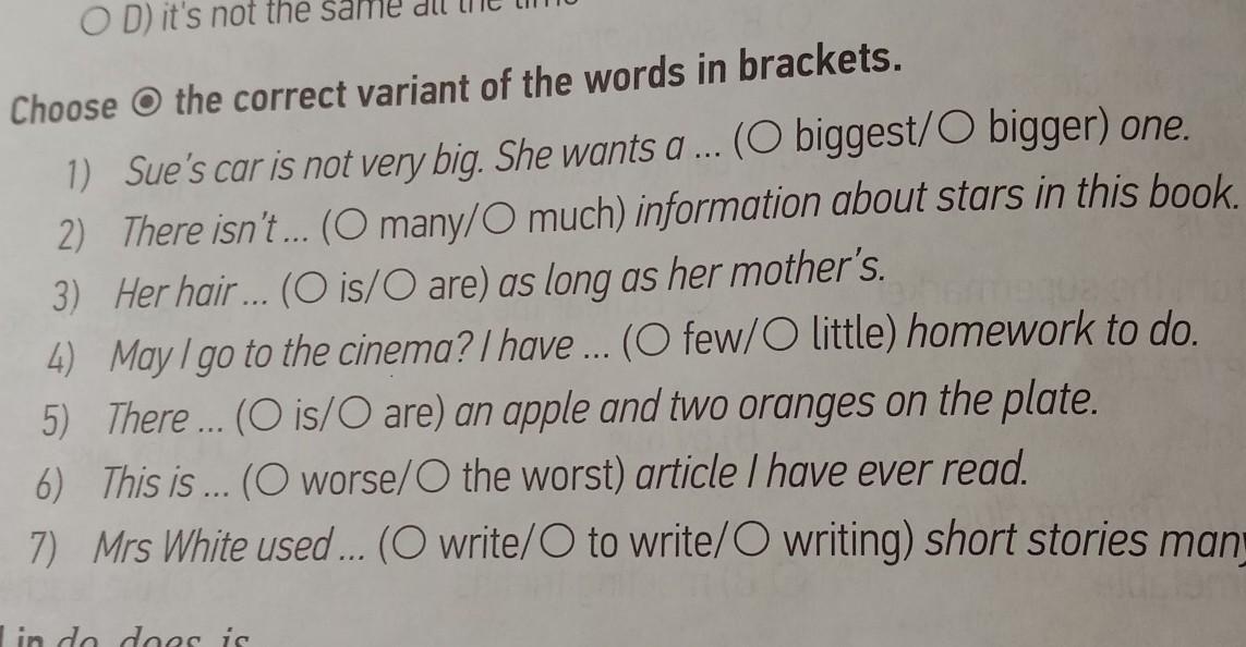 1. bigger 2. much 3. is 4. little 5. is 6. the worst 7. to write