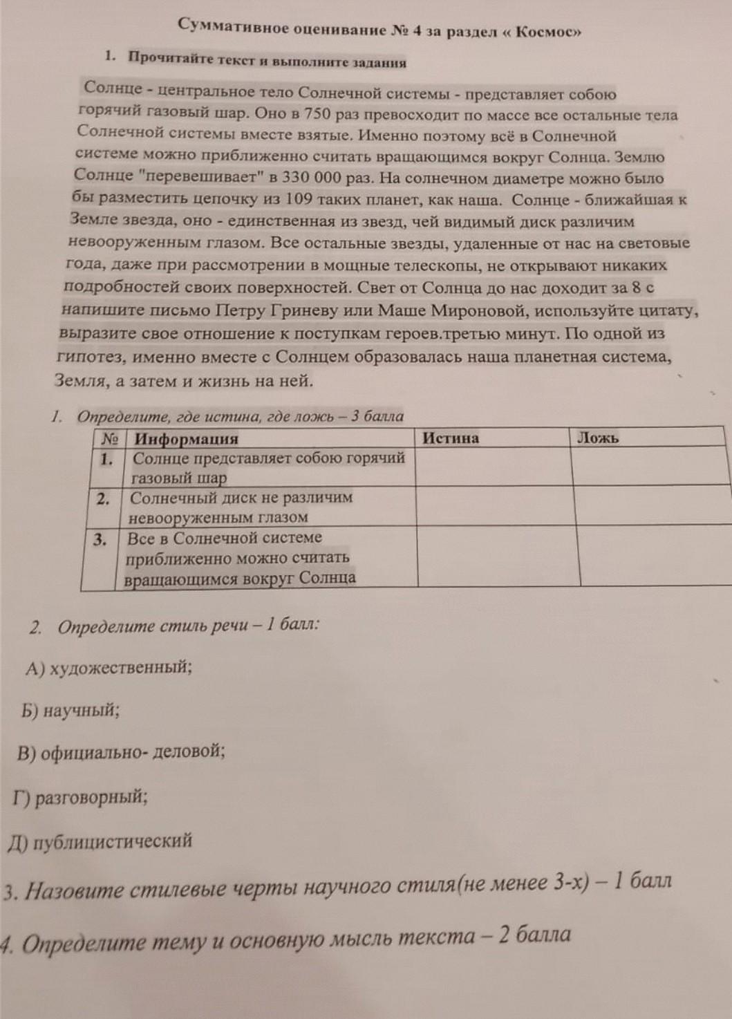 Основная мысль: Солнце самая большая звезда у которой солнечный диск можно рассмотреть невооружённым взглядом.