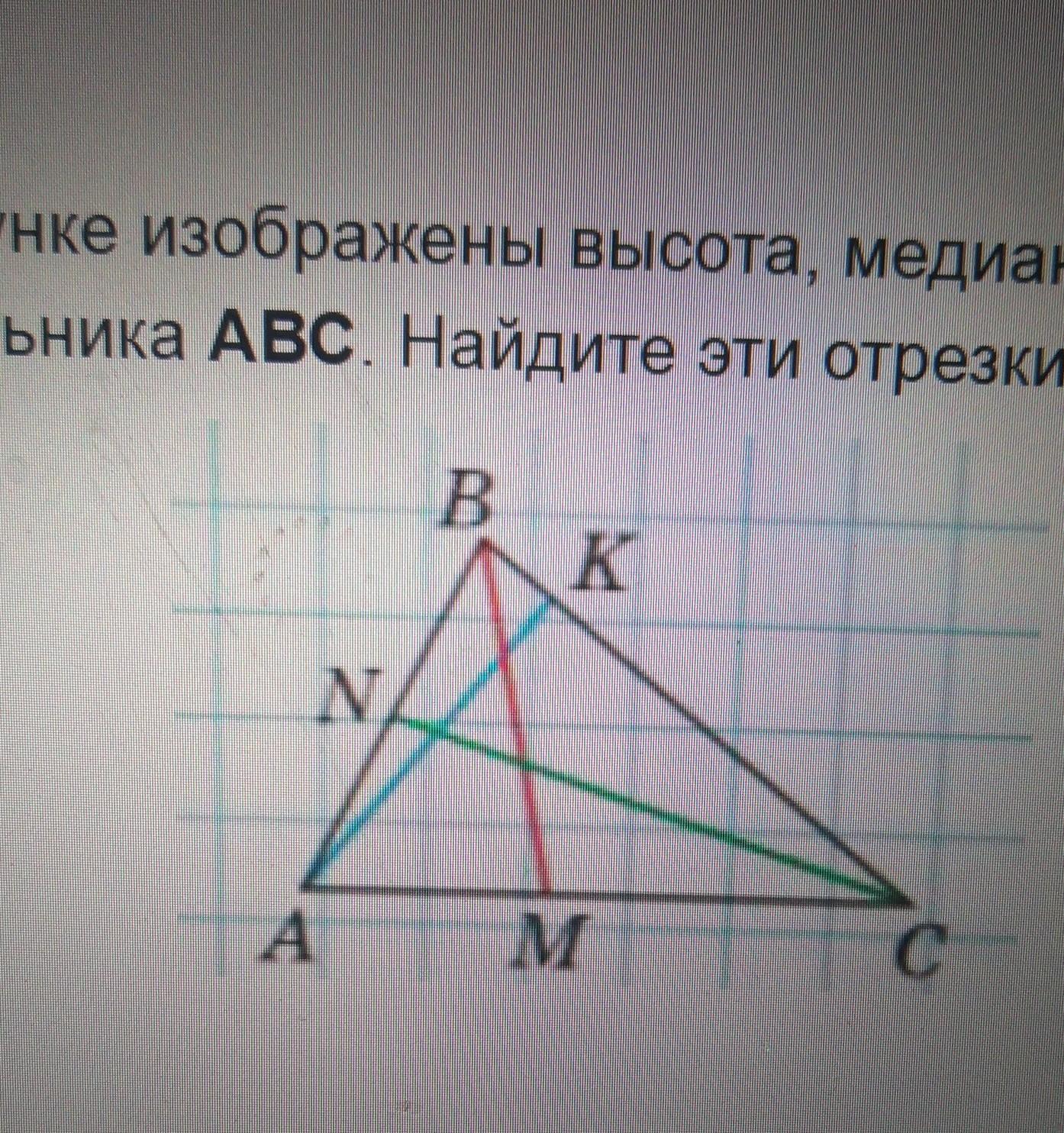 На рисунке изображены высота , медианы и биссектриса треугольника ABC. Найдите эти отрезки