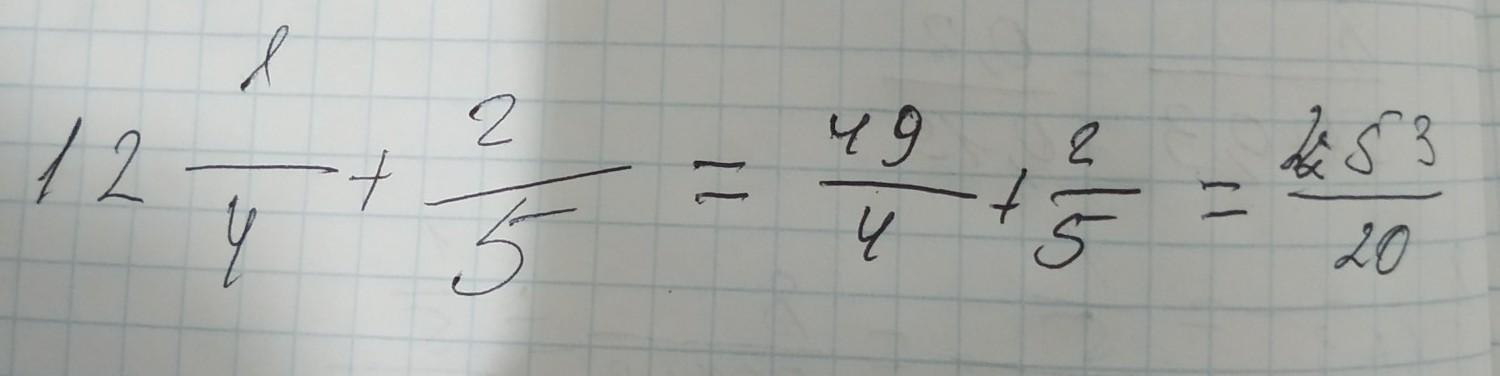 1)12 1/4+2/5=12 5/20+ 8/20=12 13/20