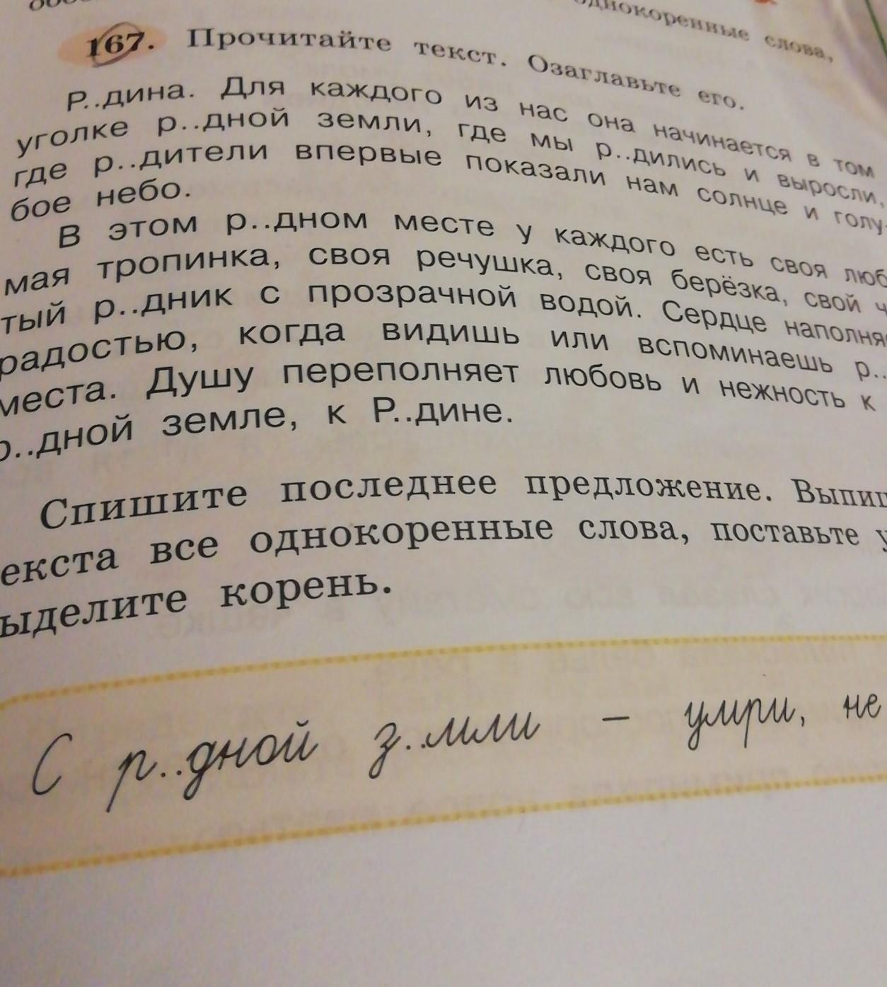 Прочитайте текст Озаглавьте его Спишите Последнее предложение Выпишите из текста все однокоренные слова поставь ударение Выдели корень
