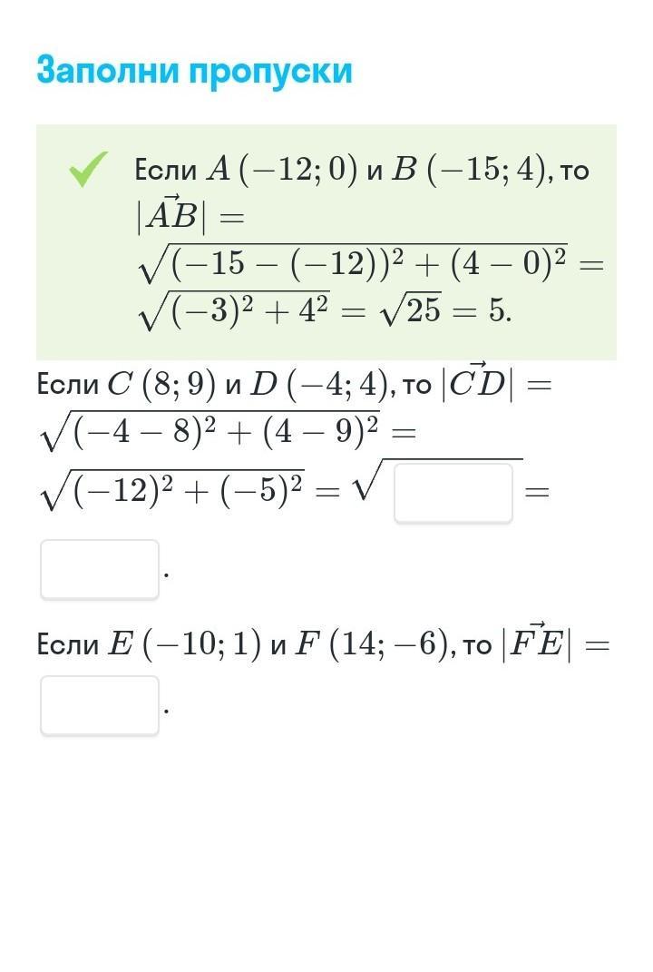 Если Е (-10;1) и F (14; -6), то |FE| = 25