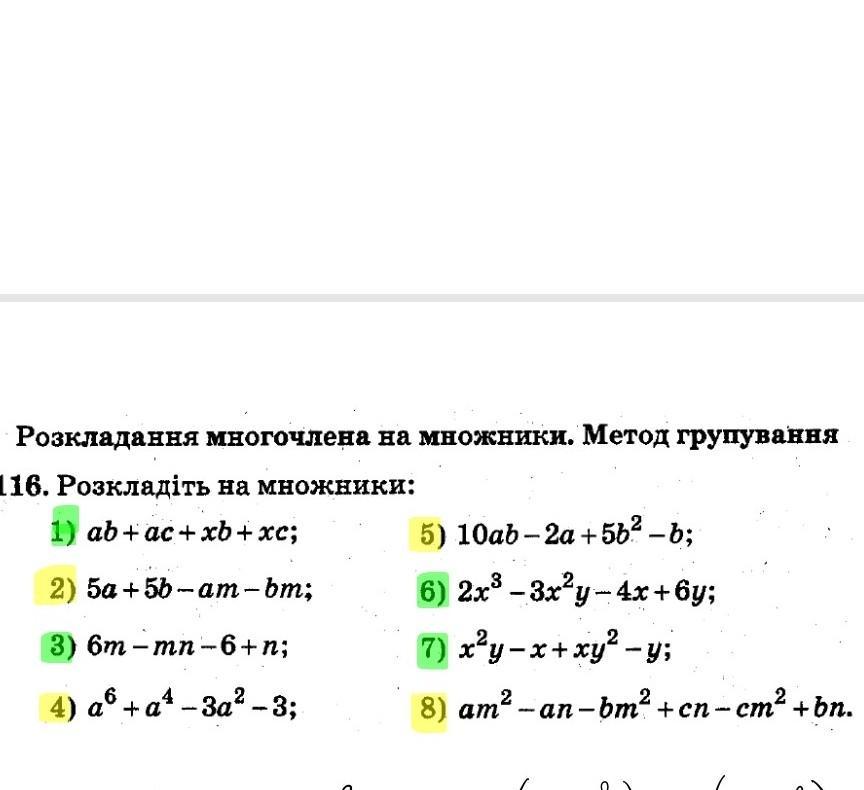 1)ab+ac+xb+xc=(ab+ac)+(xb+xc)=a(b+c)+x(b+c)=(b+c)(a+x)