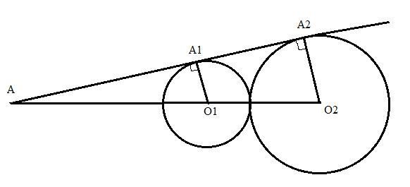 Рассмотрим треугольники △О1АА1 и △О2АА2. Они прямоугольные (радиус окружности, проведенный в точку касания, перпендикулярен касательной) и у них общий угол А => △О1АА1 ~ △О2АА2 по двум углам.