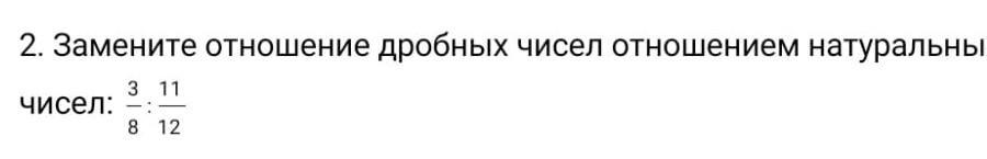 3/8 : 11/12= 3/8 * 12/11= 3/2 * 3/11= 9/22