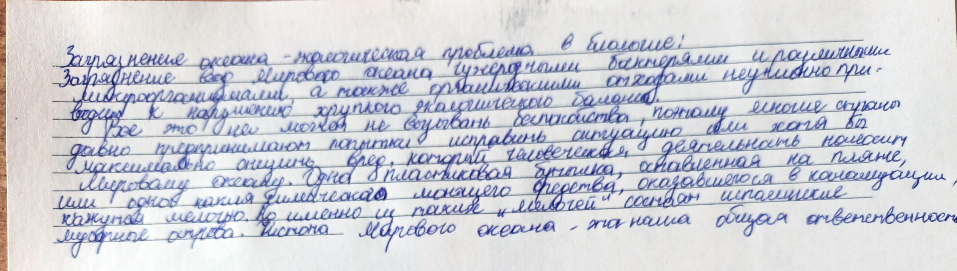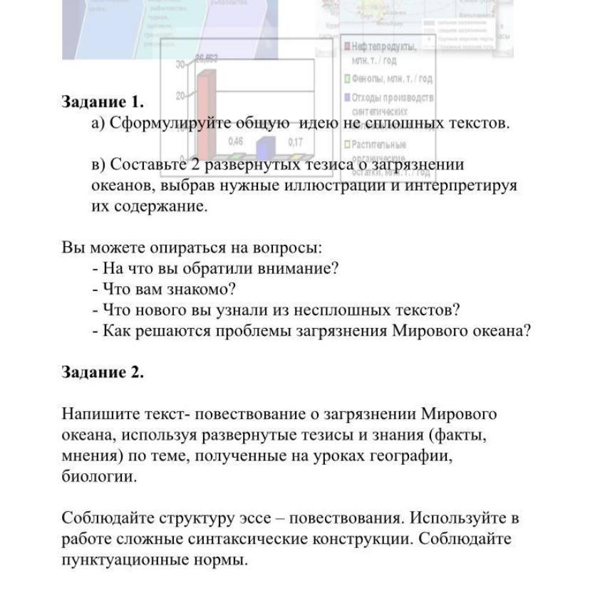 Напишите текст-повествование о загрязнении Мирового океана, используя развёрнутые тезиисы и знания по теме, полученные на уроках географии, биологии. Соблюдайте структуру эссе- повествования. Используете в работе сложные синтаксические конструкции. Соблюдайте пунктуационные нормы.