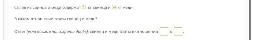 Ответ (если возможно, сократи дробь): свинец и медь взяты в отношении к .