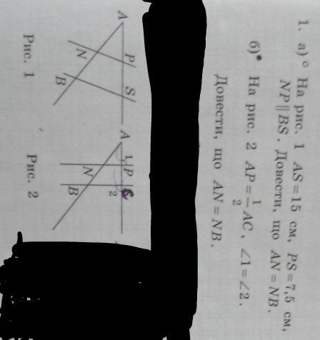 1. а) АР=AS-PS=15-7.5=7.5см => AP=PS. Тогда, учитывая, что NP || BS, по теореме Фалеса (если параллельные прямые, пересекающие стороны угла, отсекают на одной его стороне равные отрезки, то они отсекают равные отрезки и на другой стороне угла) следует, что AN=NB.