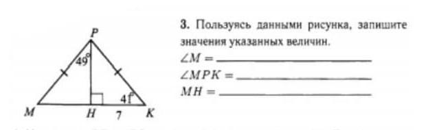 Ответ: ∠M = 41°; ∠MPK = 98°; MH = 14 ед.
