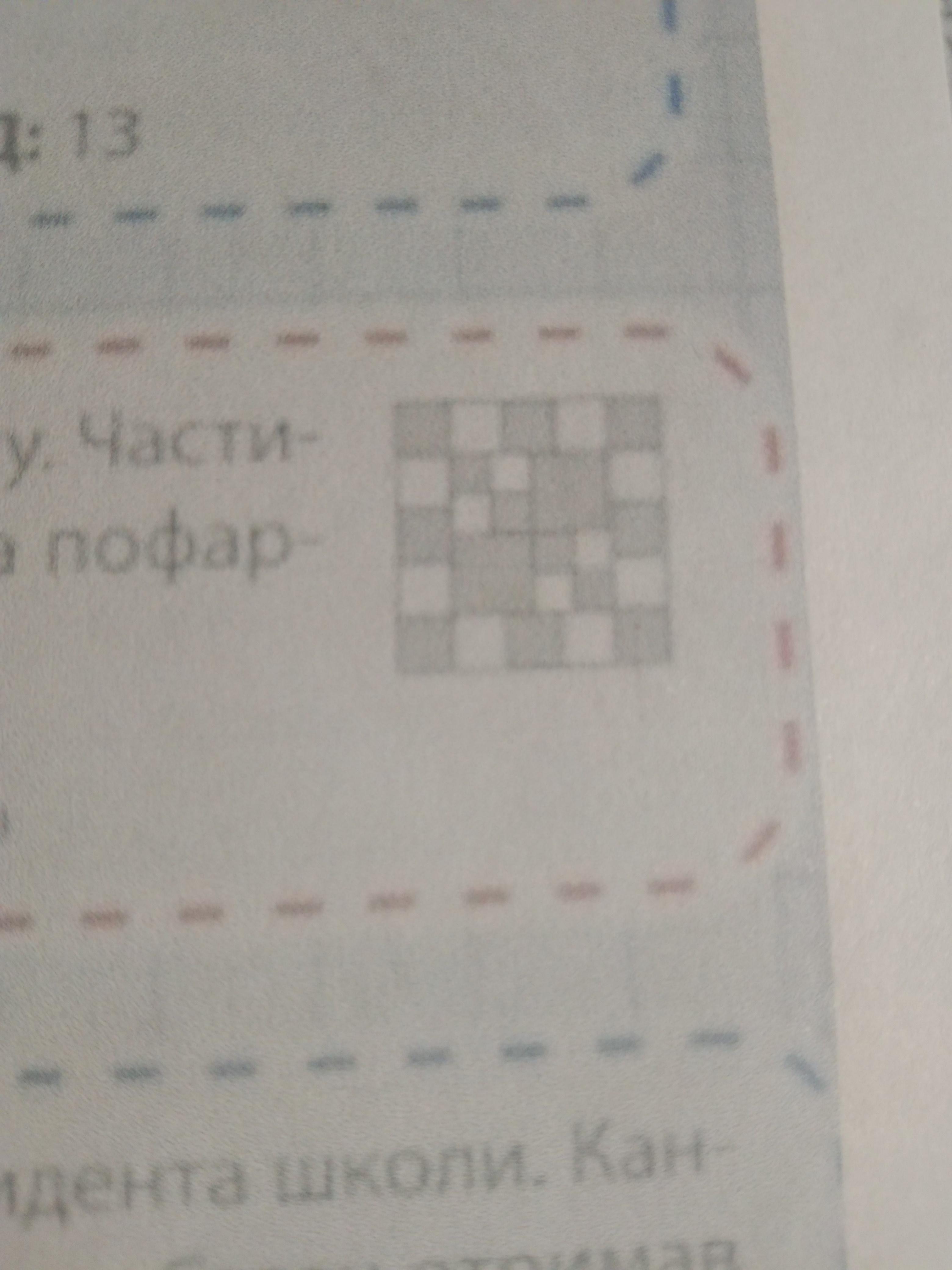 Великий квадрат розділили на менші квадрати так, як показано на малюнку. Частину з них пофарбували у сірий колір. Яку частину площі великого квадрата пофарбовано у сірий колір?