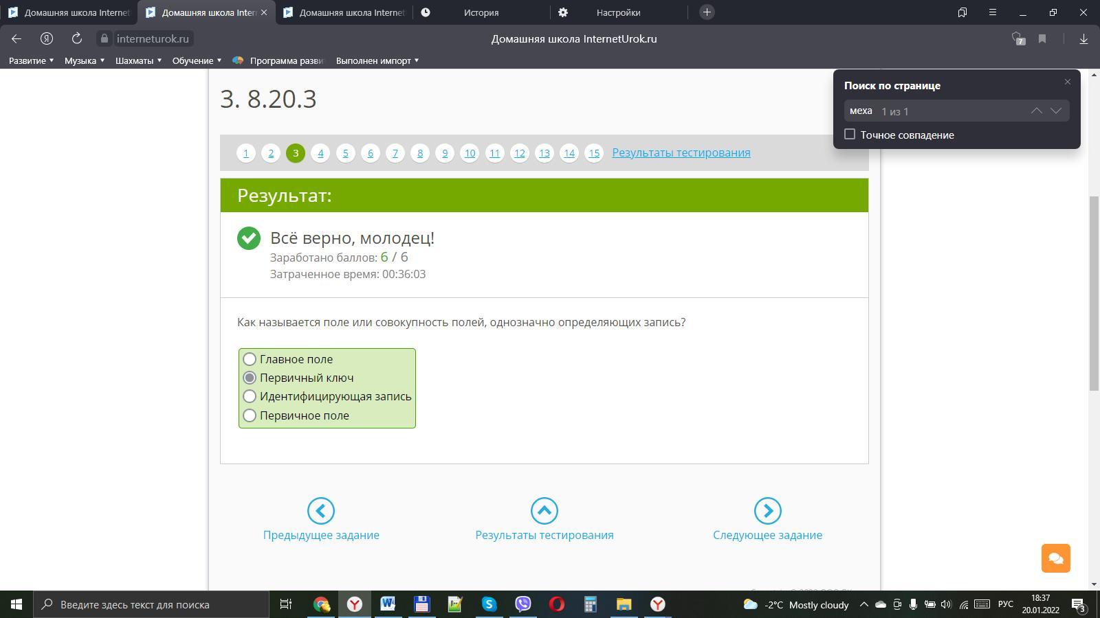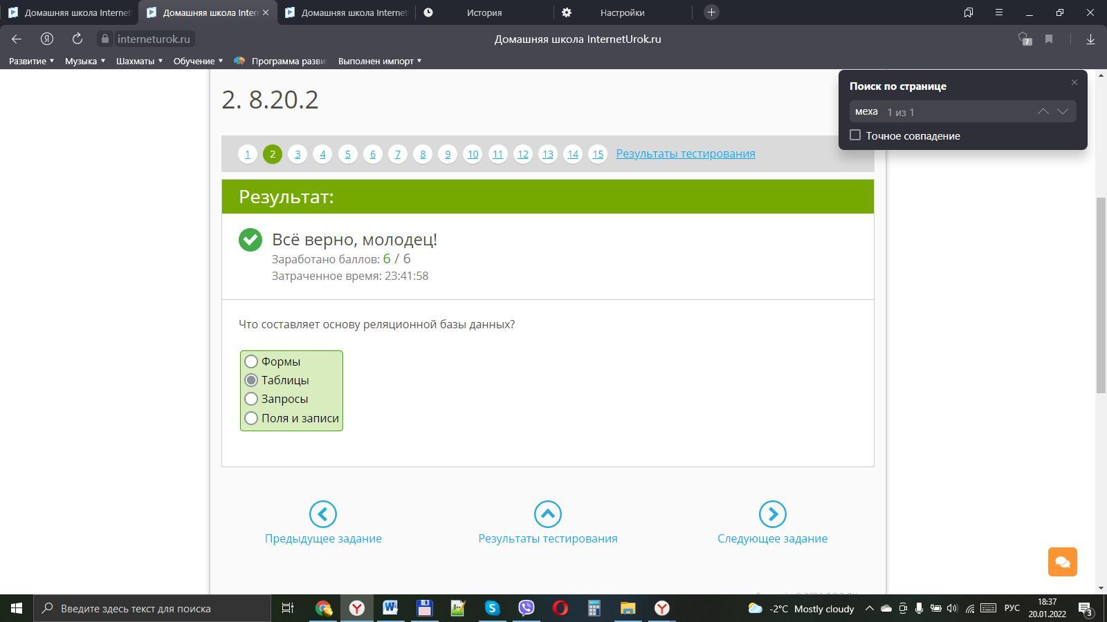 6-2, 7-shift-tab, 8-D, 9- вба, 10- двойное нажатие, 11- все варианты верны, 12- формы, 13- Одной записи базы данных, 14 - добавлять и удалять поля, 15- режим таблицы. Информатика 20 неделя кто из интернета урока