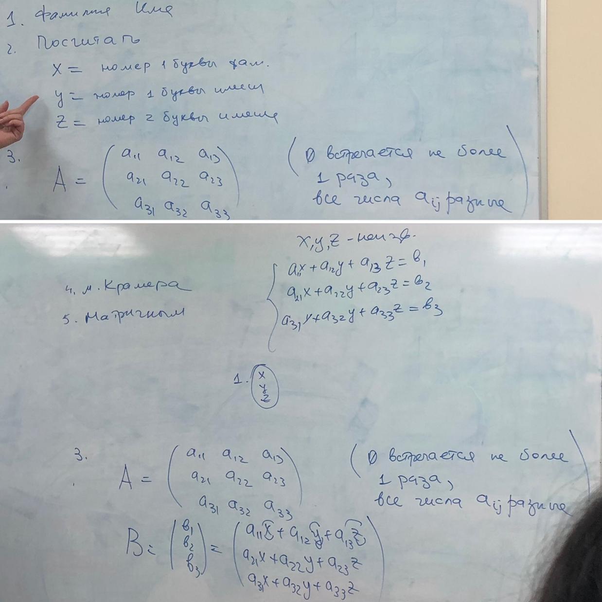 Придумать систему линейных уравнений и решить её а) методом Крамера и б) матричным методом . Решениями системы должны быть х=24 , y=20 , z=1 .