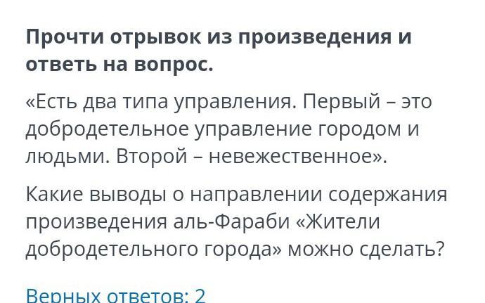 Материальная и духовная культура тюрков. Урок 1. Верных ответов 2: 1)Необходимо проповедовать суфизм. 2)Распространяется ислам. 3)Язык и литература тюркского народа. 4)Необходимо поддерживать порядок между городом и людьми. 5)У правителей есть власть.