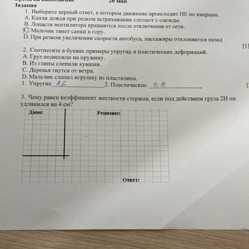 3. Чему равен коэффициент жесткости стержня, если под действием груза 2H он