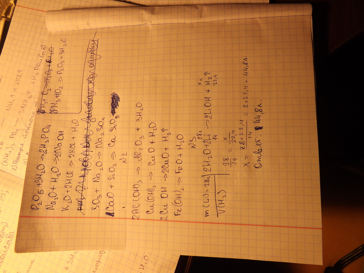 3)Расчитайте какой объем водорода образуется при растворении в воде лития массой 28 г.