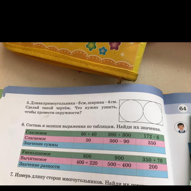 Длина прямоугольника —8см,ширина—4см. Сделай такой чертеж. Что нужно узнать чтобы провести окружности