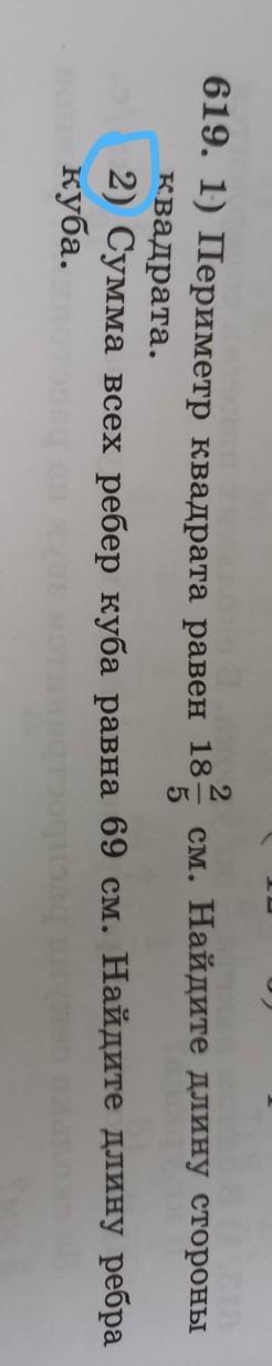 619. 2) Сумма всех ребер куба равна 69 см.Найдите длину ребра куба Сделать например как