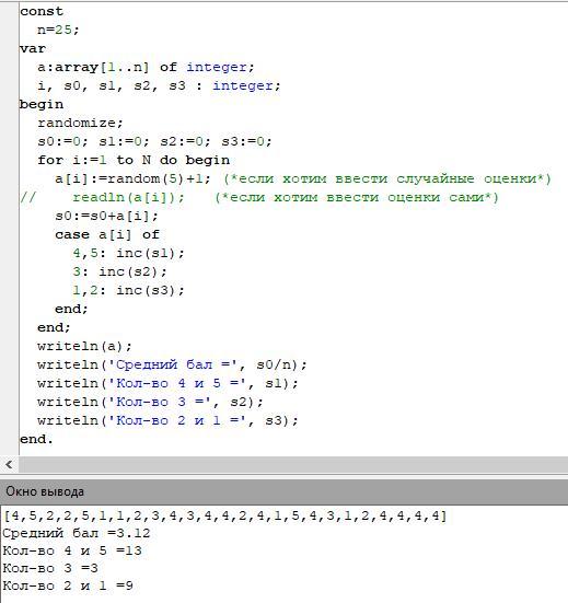 // readln(a[i]); (*если хотим ввести оценки сами*)