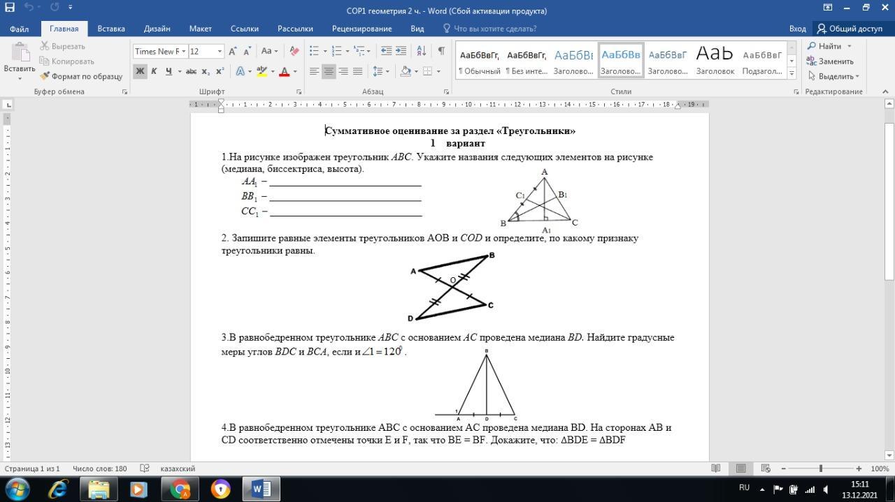Треугольники равны по первому признаку(двум равным сторонам и углу между ними)