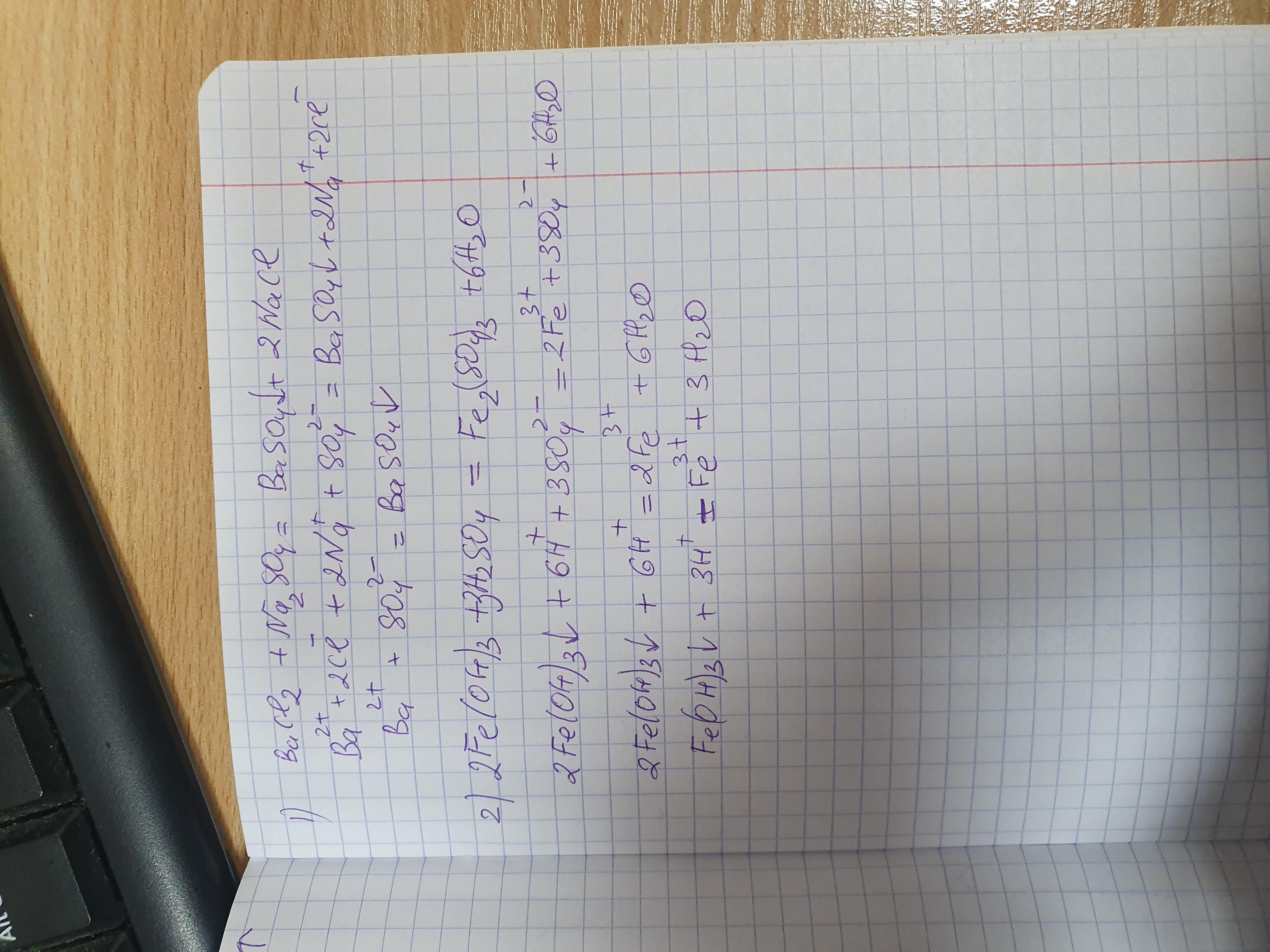 Догтиліть рівняння реакції в молекулярному вигляді та напишіть рівняння в повному та скороченому йонному вигляді: А) BaCl2 + Na2SO4 -- Б) Fe(OH)3 + H2SO4 -- 15 ба II
