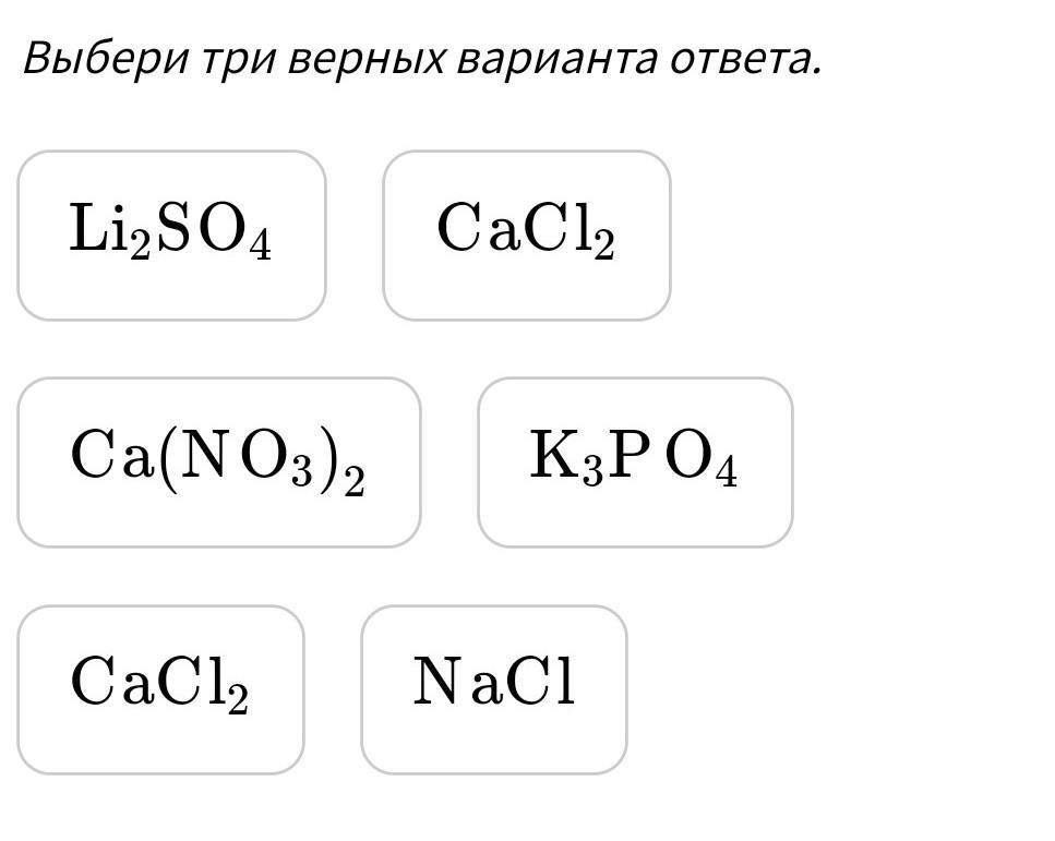 Li2SO4; Ca(NO3)2; K3PO4 - кислородосодержащие соли