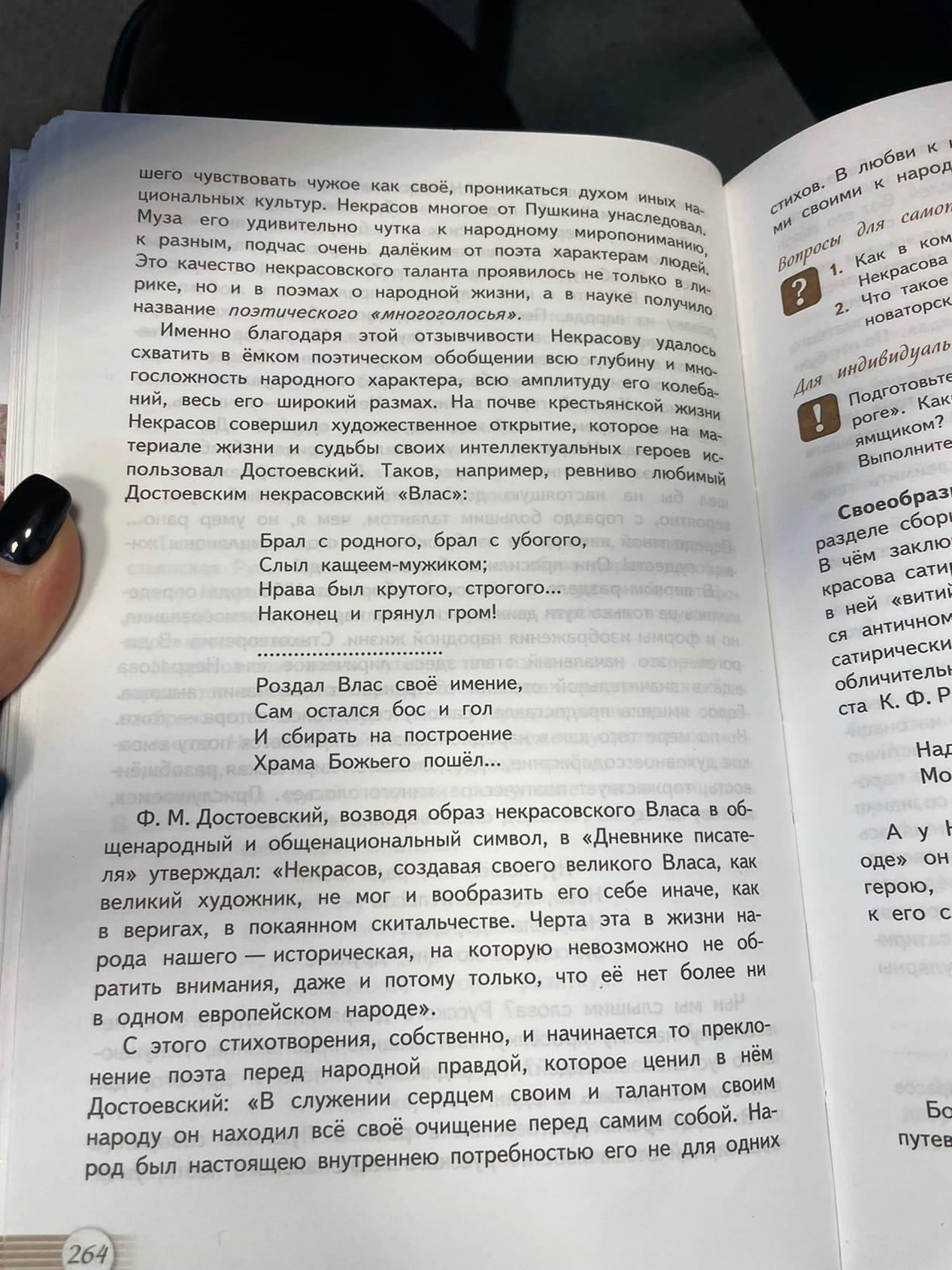 1)После потрясающих картин бедствий народных поэт, в полном соответствии со своими принципами, показывает еще одну, не менее страшную картину примирения народа с угнетателями, торжества толстого подрядчика и «грамотеев-десятников». Народ, с криком «Ура!» мчащий по дороге лабазника,- в этом почти символическом эпизоде есть что-то жуткое. Вот правда, которая не может и не должна оставить равнодушными всех, кому дорога родина. Вспомним, что в «Размышлениях у парадного подъезда» Некрасов призывал покончить с вековым терпением народа, а Салтыков-Щедрин в своей сказке с болью писал о «мужичине», который сам свил для себя веревку. Как верно заметил И. Рыленков, «самая суровая и горькая правда о народной жизни в стихах Некрасова не могла быть обидной для народа, так как это была правда самого народа, выражавшая его моральный кодекс, его веру в лучшее будущее, в конечное торжество справедливости