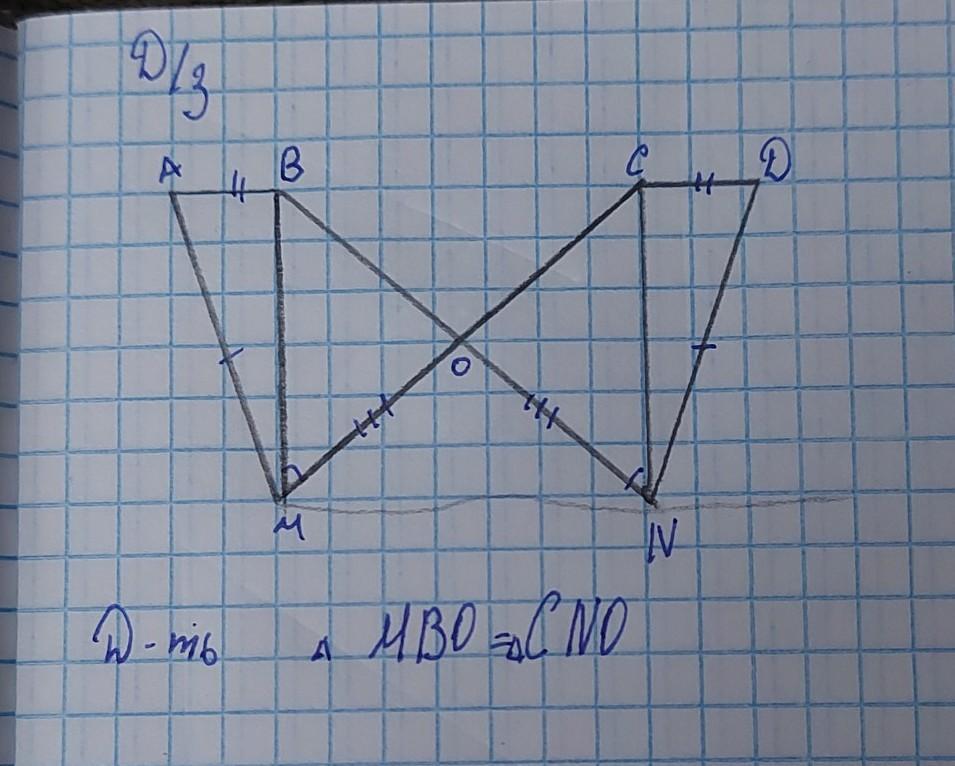4) ∆MBO=∆CNO ( по 2-ому признаку равенства треугольников)