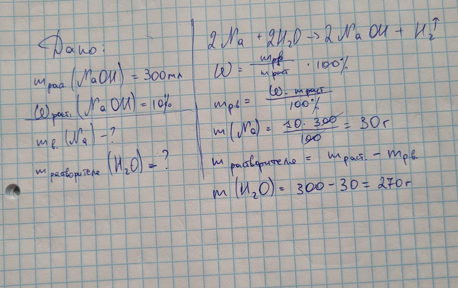 Ответ: m(Na) = 30г; m(H2O)=270г.