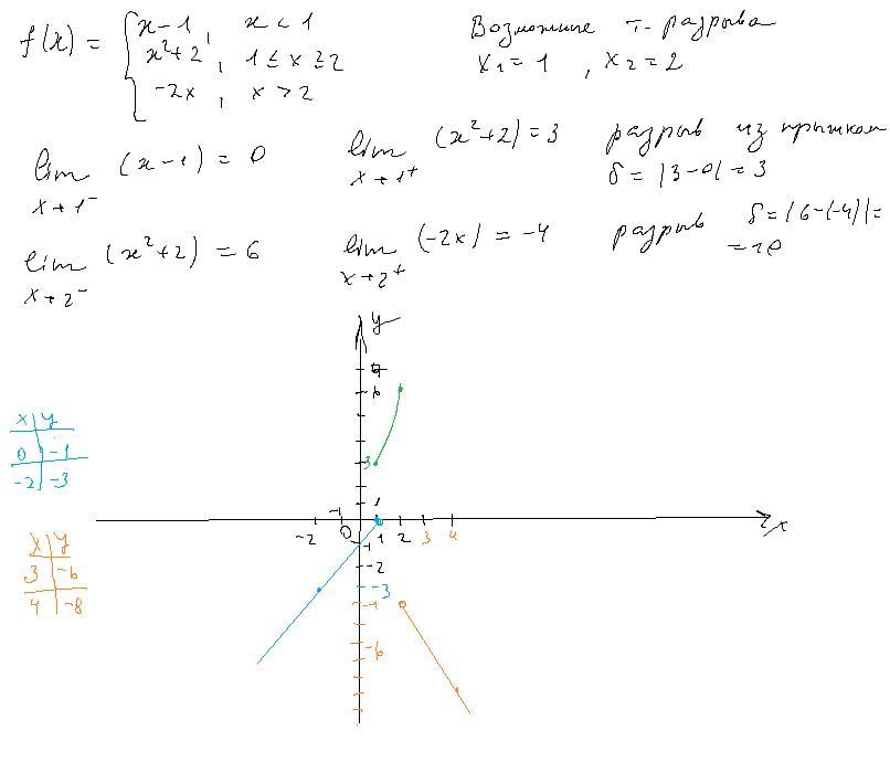 Исследуйте функцию на непрерывность и постройте ее график. Укажите точки разрыва и их род.