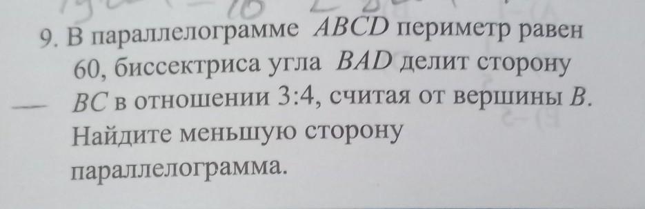 тут надо понять что если это бисектрисса то меньшая сторона будет равна 3 частям большей стороны потому что она треугольник равнобедренный отсекает там углы равны как накрест лежащие...короче лень писать...
