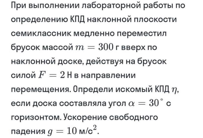 m=0.3 кг F=2 H α=30° η=?