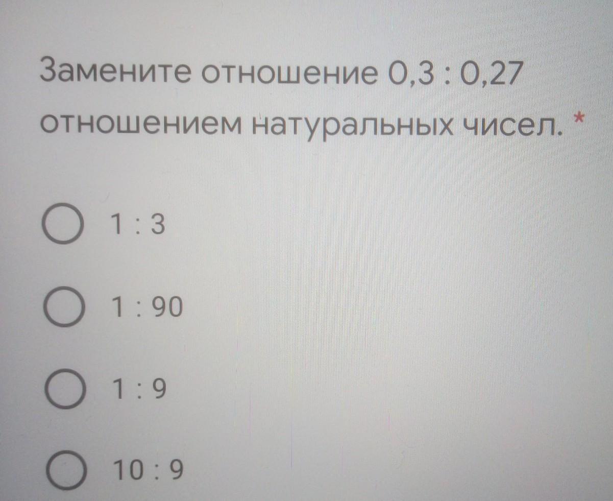 1:9 объяснение : оба изначальных числа умножаются на одно и тоже число и отношение соответствует истине