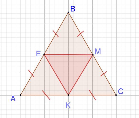 ⇒ ЕМ = МК = ЕК = 4:2 = 2 (см)