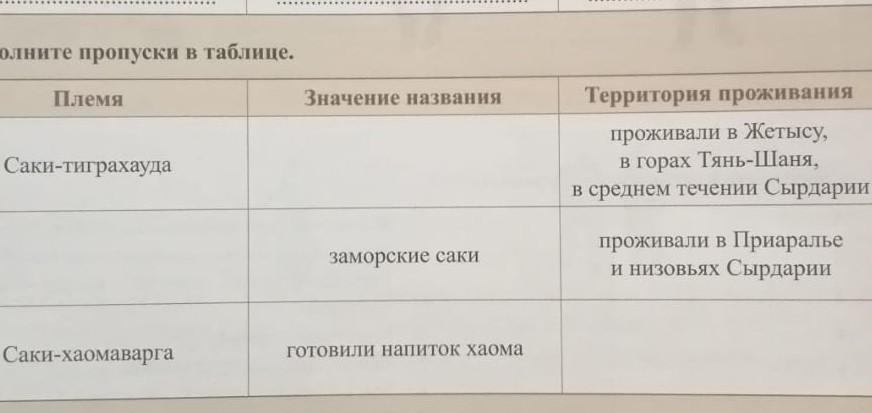 4. Заполните пропуски в таблице племя, значение названия, территория проживания
