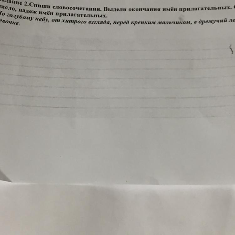 Задание 2.Спишн словосочетания. Выдели окончания имён прилагательных. Определи род,