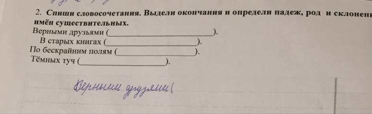 2. Спиши словосочетания. Выдели окончания и определи падеж, род и склонение