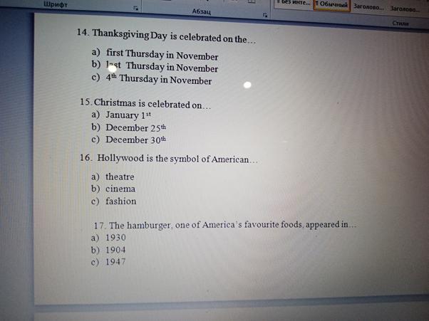 Ответ: 1b, 2b, 3c, 4a, 5b, 6b, 7c, 8a, 9a, 10b, 11b, 12b, 13a, 14b, 15b, 16b, 17b, 18a.