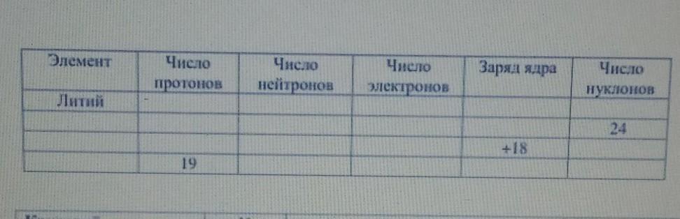 4. Дайте полное описание химического элемента по названию и количеству фундаментальных частиц, заполнив пустые места в Ниже приведенной таблице.