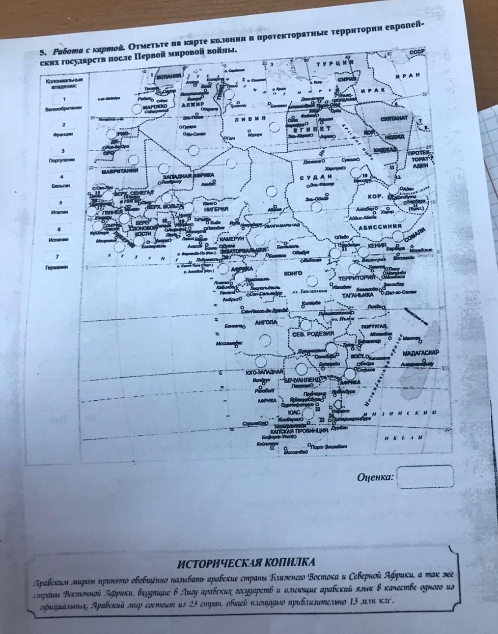 5. Работа с картой. Отметьте на карте колонии и протекторатные территории европей сках государств после первой мировой войны.