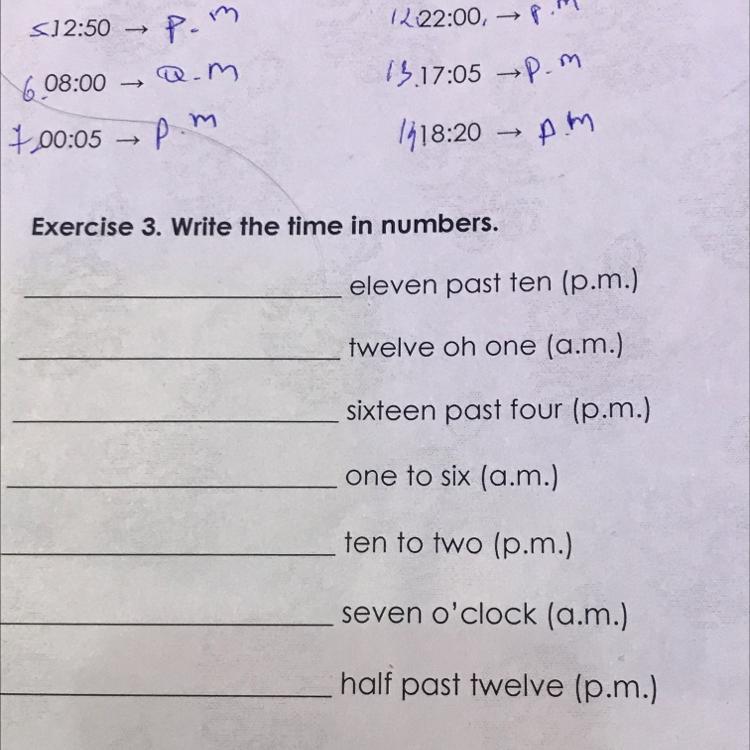 1) 11:11 2)00:01. 3)16:16. 4)5:59 5)1:50 6)7:00 7)12:30