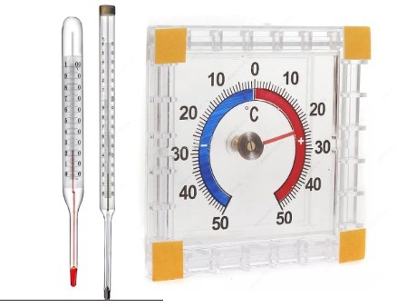 Наиболее используемые устройства - жидкостные термометры (Рис. 1 слева). В них жидкость залита в колбу, а шкалой является тонкая трубка. Если для измерения низких температур используют спиртовый термометр (до -70°С), то для более высоких - ртутные. Недостатком таких термометров является низкая прочность стеклянных колб.
