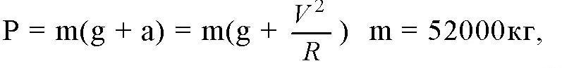 3. Трактор массой 52 т, имея скорость 18 м/с, въезжает на плоский мост. В результате мост прогибается и образует дугу радиусом 40 м.