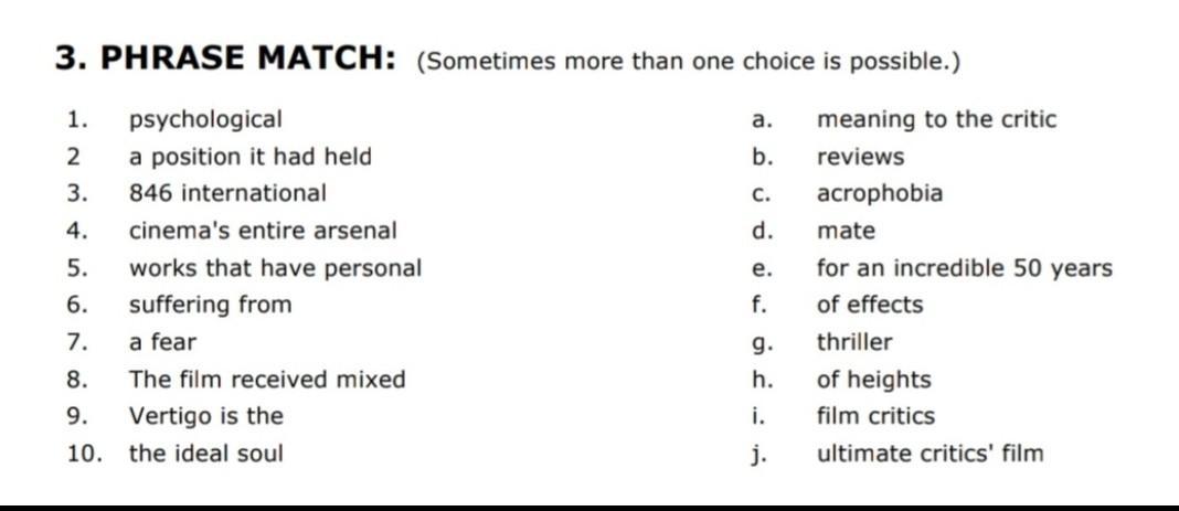 PHRASE MATCH: (Sometimes more than one choice is possible.) СРОЧНООО!!! ОТВЕТ НУЖЕН ДО 13:00