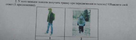 У кого меньше шансов получить травму при передвижении в гололед? Объсните свой ответ