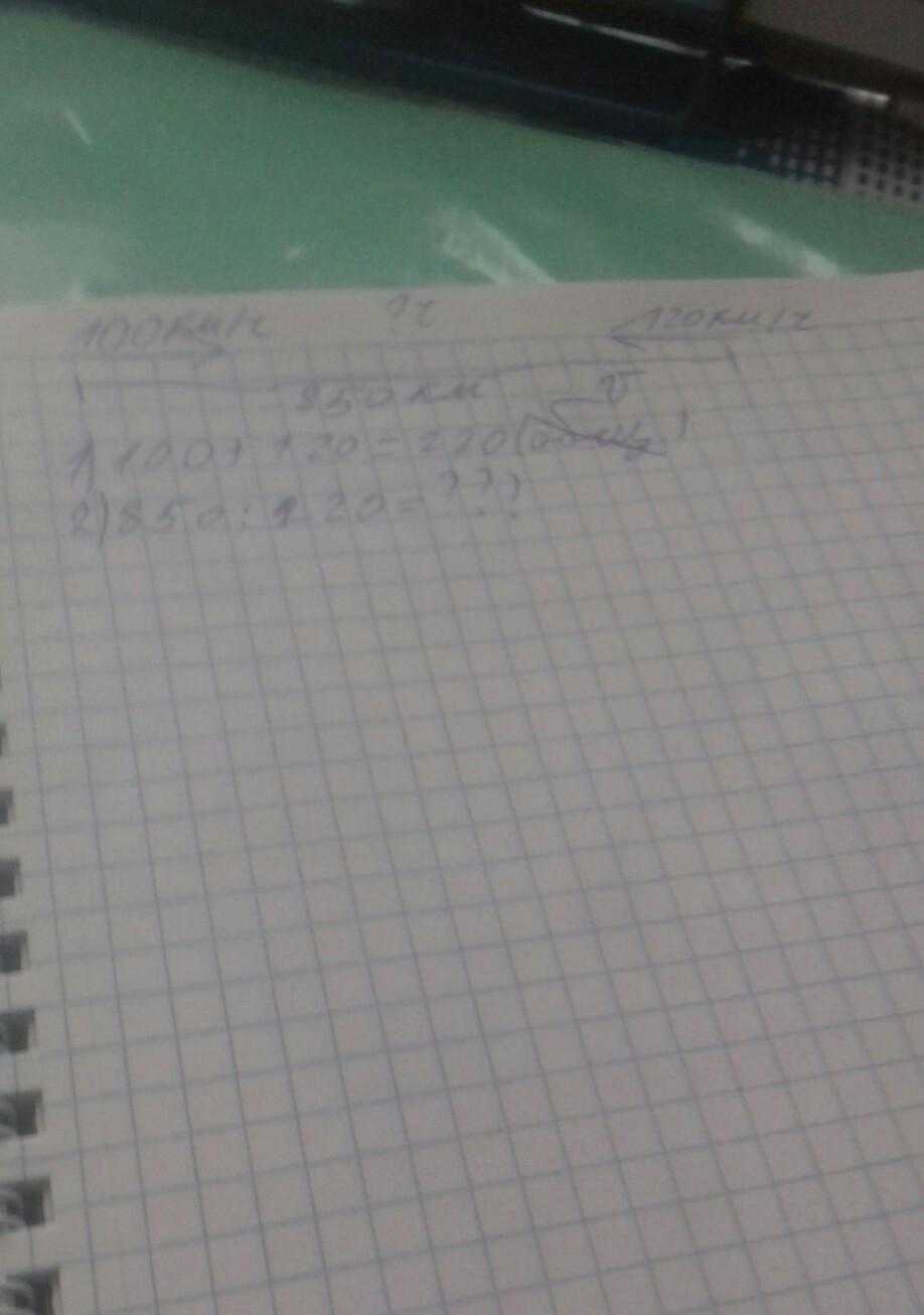 4. Задача: Два автомобиля движутся навстречу друг другу со скоростями 120 км/ч и 100 км/ч. Через сколько часов они встретятся, если в начале движения между ними было 850км?