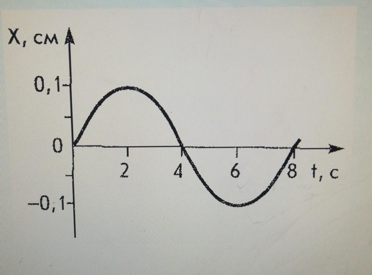 Объяснение: А= 0,1 см Т=8с ν=1/Т=1/8 с=0, 125 Гц