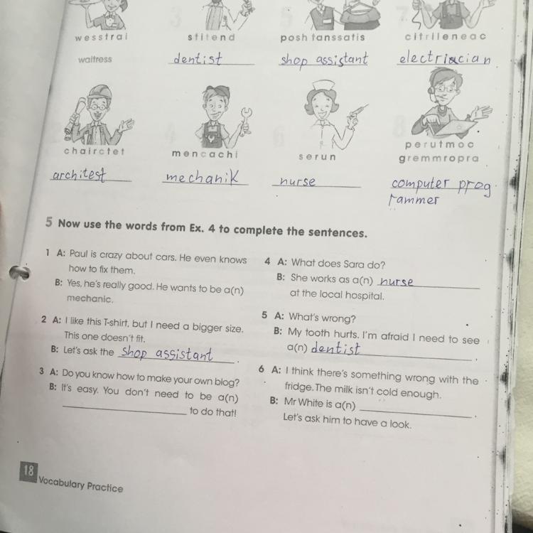 Срочно нужно поставить профессии 5 Now use the words from Ex. 4 to complete the sentences.