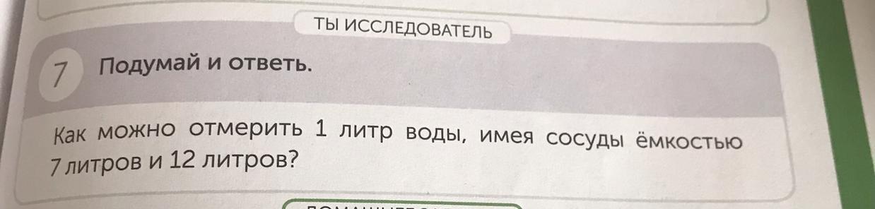 Как можно отмерить 1 литр воды, имея сосуды ёмкостью